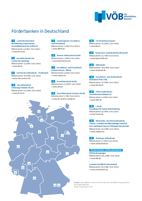 Diese Grafik gibt einen Überblick über alle Förderbanken des Bundes und der Länder und stellt deren Bilanzsummen dar.