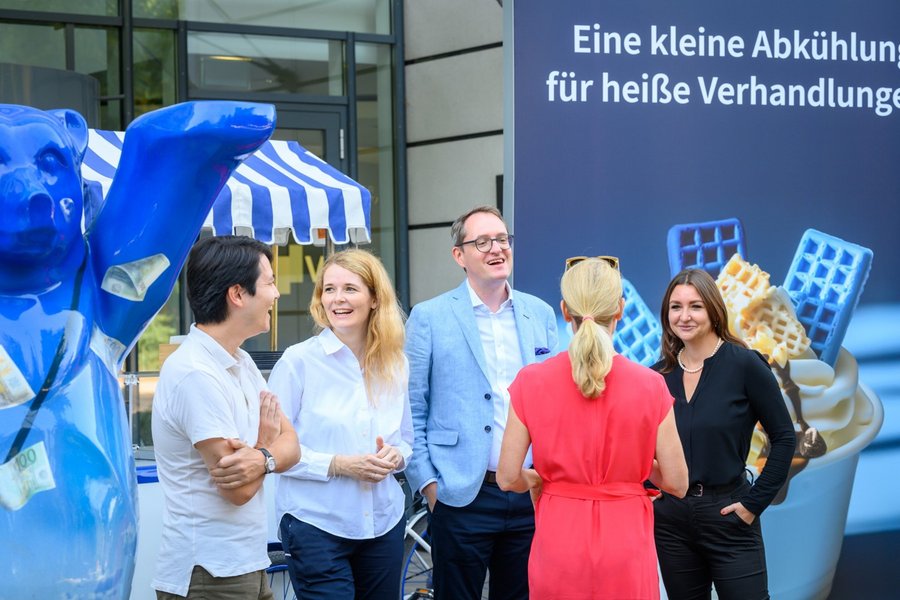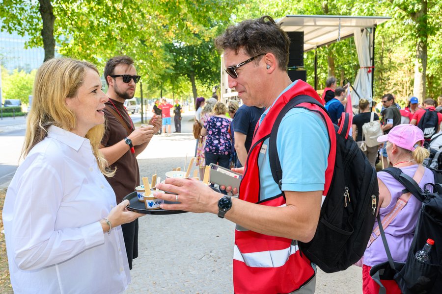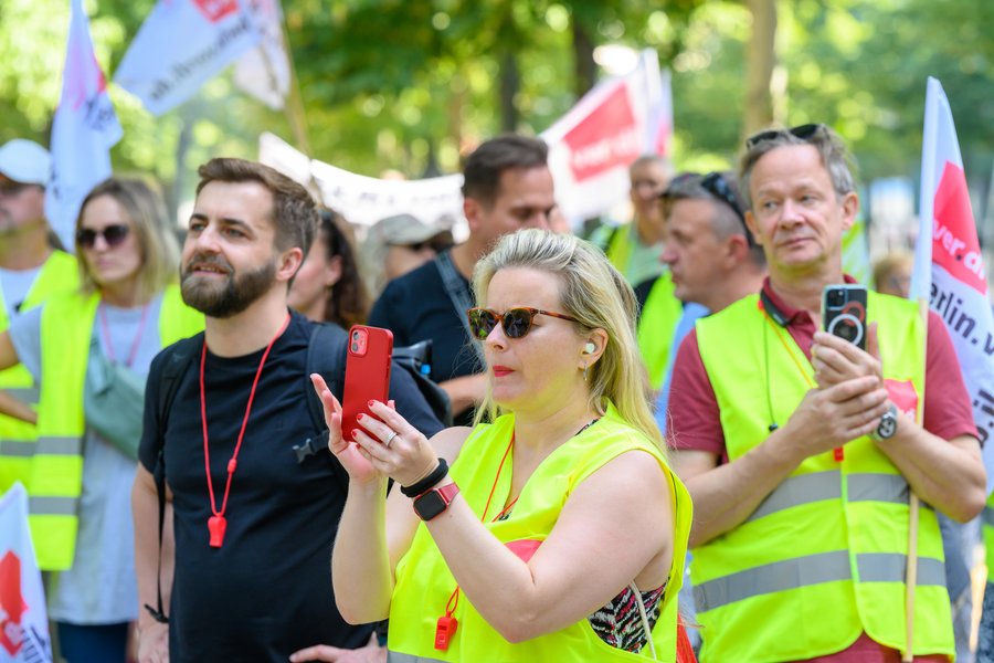 Unter dem Motto „Eine kleine Abkühlung für heiße Verhandlungen“ gab es vor dem Start in die zweite Verhandlungsrunde Eis für die ver.di-Mitglieder, die am 06. September 2024 vor dem Verbandsgebäude in Berlin demonstrierten.