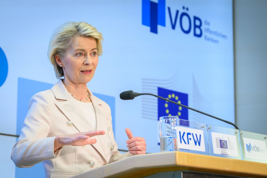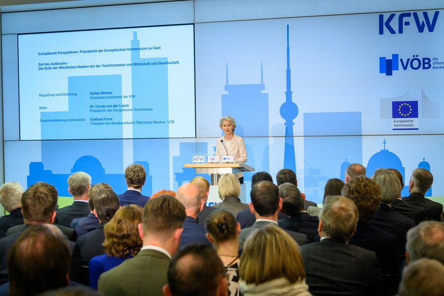 Als Gast durften VÖB-Hauptgeschäftsführerin Iris Bethge-Krauß, KfW-Vorstandsvorsitzender Stefan Wintels und VÖB-Präsident Eckhardt Forst NRW.BANK, Dr. Ursula von der Leyen, Präsidentin der European Commission, begrüßen. Von der Leyen hielt eine Rede zu den Europäischen Perspektiven.