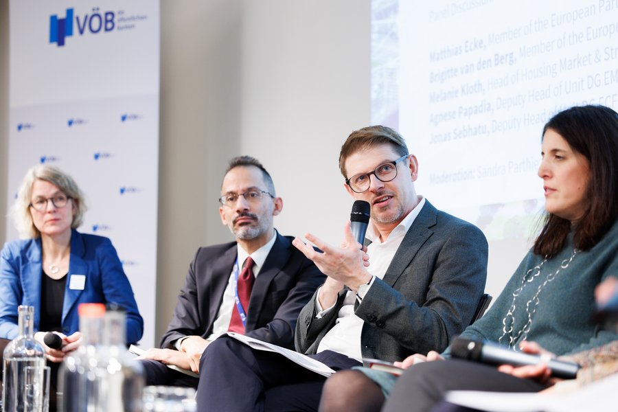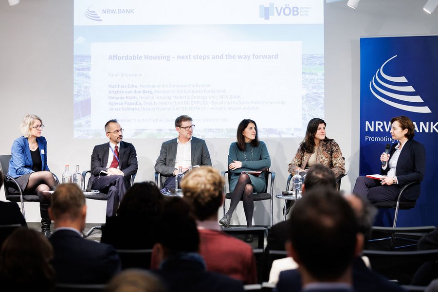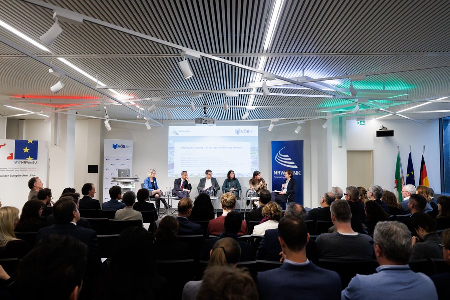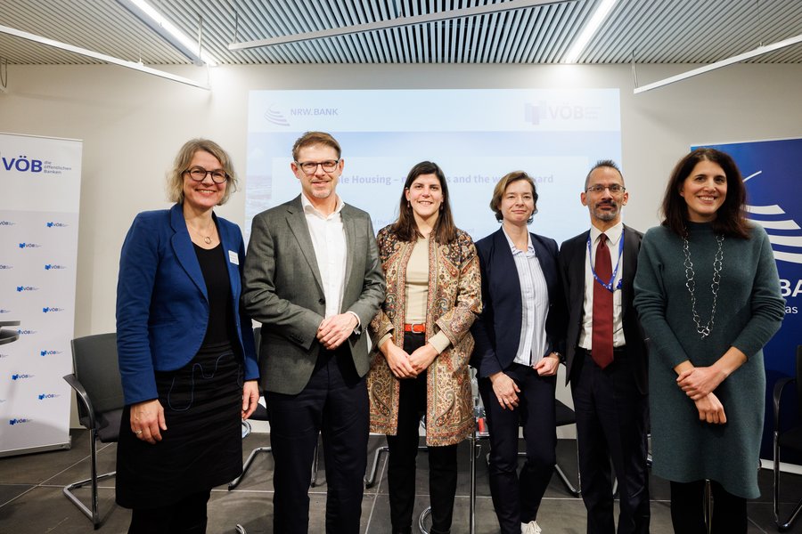 Auf einer gemeinsamen Veranstaltung von NRW.BANK und VÖB in Brüssel kamen politische Entscheidungsträger und öffentliche Banken zusammen, um eine der drängendsten Herausforderungen Europas zu diskutieren: bezahlbarer Wohnraum. Es debattierten Matthias Ecke (MdEP), Brigitte van den Berg (MdEP), Melanie Kloth von der NRW.Bank sowie als Vertreter der EU-Kommission Agnese Papadia sowie Jonas Sebhatu. Hier sind die wichtigsten Erkenntnisse: